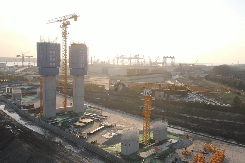 張靖皋長江大橋作為國家級重點(diǎn)項(xiàng)目,項(xiàng)目建設(shè)從水面、陸地兩線推進(jìn),建設(shè)中結(jié)構(gòu)吊裝工程量大,特別是橋墩的架設(shè)過程,對吊裝機(jī)械設(shè)備的載荷量、精準(zhǔn)度、智能系統(tǒng)和安全穩(wěn)定性有極高的要求。